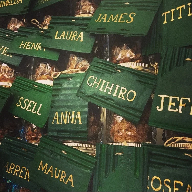 Signature gift-tags for HBO friends made out of cardboard, twine, acrylic paint and ink! This year's treat was homemade roasted pecans coated in red pepper and brown sugar.